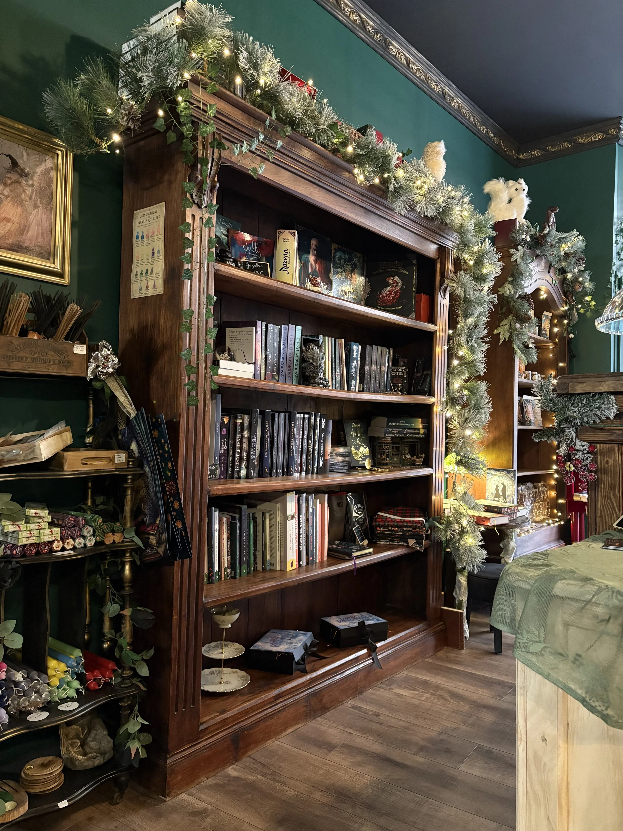 Nous proposons une partie librairie, qui tourne autour du fantastique, ésotériques, magique et proposons une sélection de romans, livres de cuisines, guides pratiques….tous dénicher avec soin et passion.